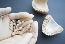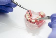 Металлическая дуга, на которую крепится пластмассовая основа, повторяющая десну в месте дефекта, с искусственными зубами. От дуги отходят металлические крючки – кламмеры. С помощью этих крючков протез крепится к зубам, выбранным в качестве опоры.